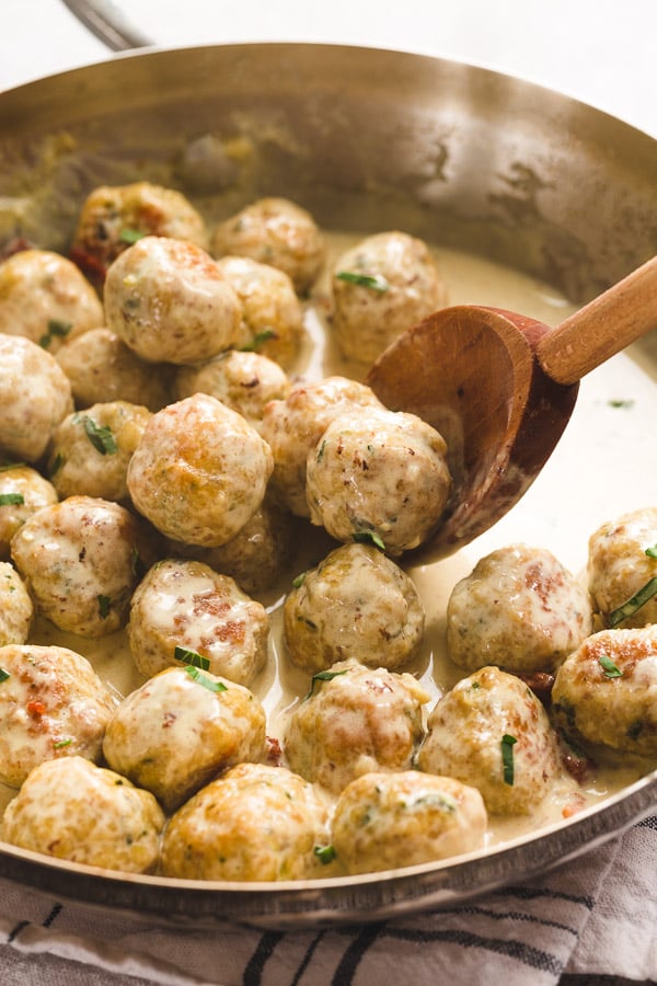 - I avoid freezing cream sauce because it can become grainy during thawing. It’s best to freeze the chicken meatballs recipe separately and make the cream sauce fresh when you’re ready to serve!