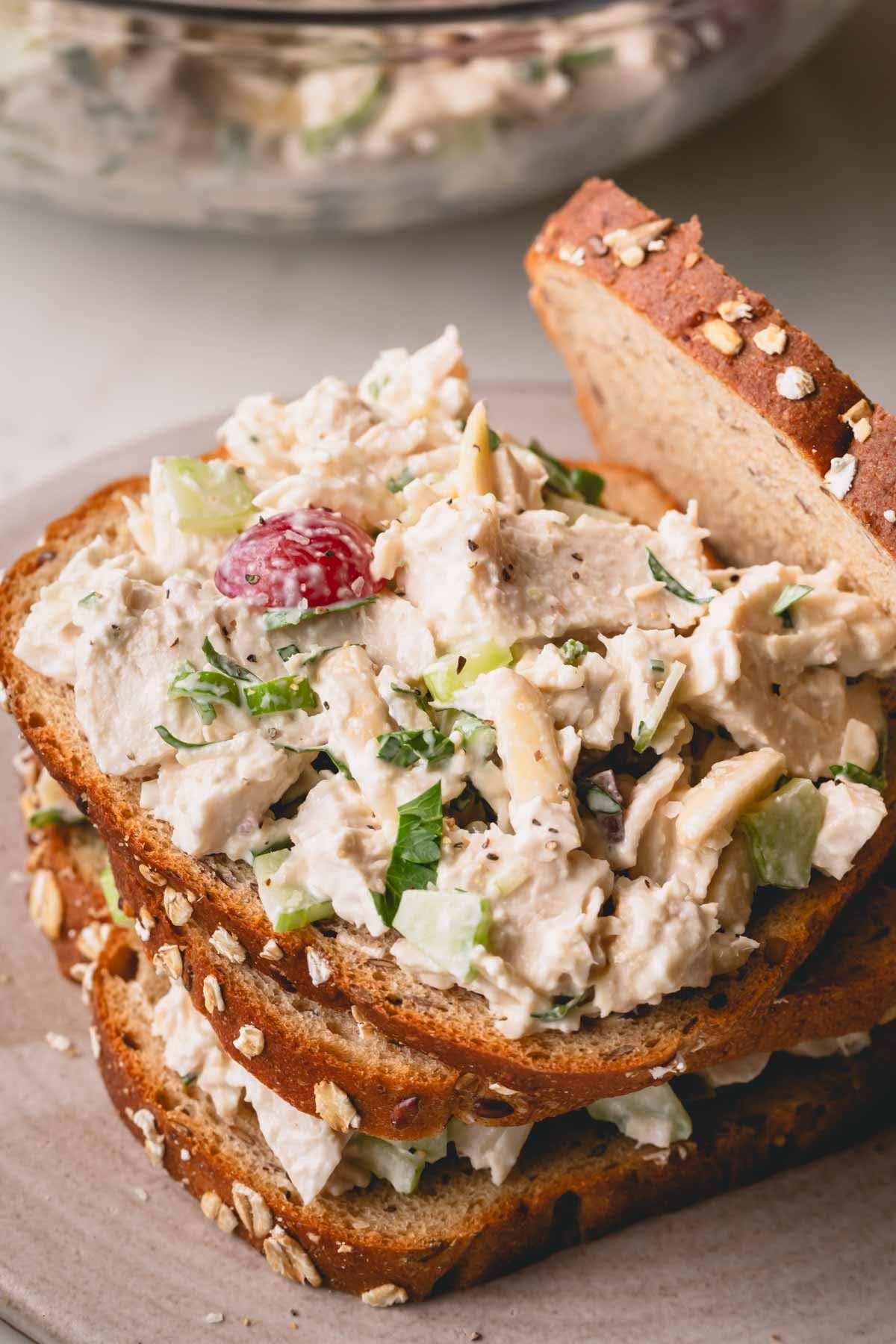 - As a sandwich: Serve classic chicken salad between two slices of whole grain bread, in a wrap, on a croissant, or in a pita pocket.