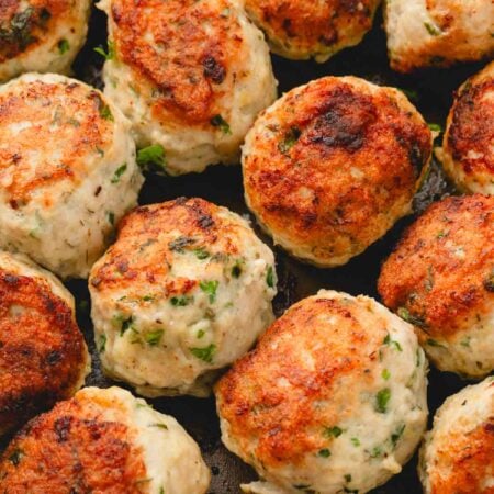 With just 10 minutes of prep time, this Greek chicken meatball recipe makes dinner feel quick and easy, but still full of flavor and never boring. It makes for great leftovers for lunch or dinner the next day served over an orzo salad. I can’t wait for you try them out (you can even make them with ground lamb) and let me know what you think!