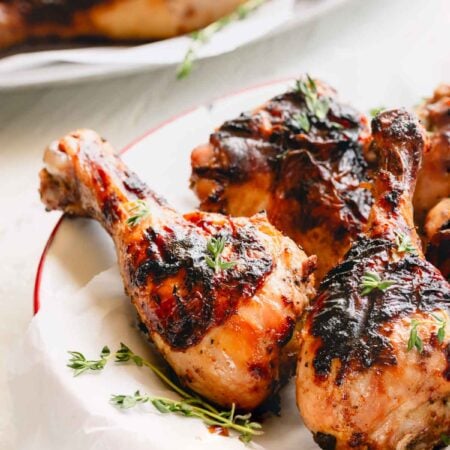 Sure! If grilling isn’t an option, you can place the marinated drumsticks on a baking sheet lined with aluminum foil, and bake at 400°F or until they reach an internal temperature of 165°F. Broil for a minute or two at the end of cooking to achieve a crispy skin, and let the chicken rest for 5 minutes before serving.