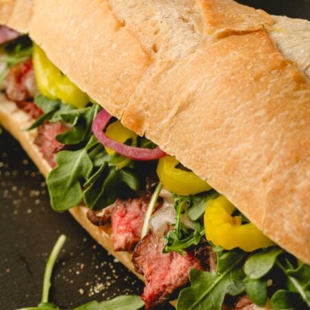 Loaded with sliced ribeye steak, two kinds of cheese, and a flavorful selection of tangy pickled vegetables, this ribeye steak sandwich recipe is the best you’ll ever taste!