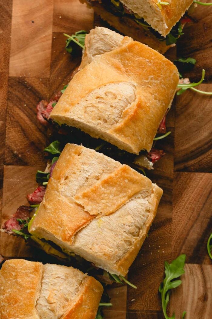 - Bread – I love to use baguette bread for this ribeye steak sandwich recipe. Its hearty, chewy texture holds up well and creates a nice bite. If you can’t find baguette bread, any other sturdy bread like ciabatta or hoagie rolls will work.