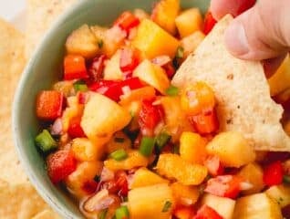 For several summers we would grow tomatoes in the backyard, and this salad with juicy tomatoes and red onion was one of our go-to recipes. We love to serve it for a light lunch or to accompany a protein for a quick dinner. We still make it almost once a week when the weather is warm! It’s best when served with an easy main course like cilantro lime chicken or stovetop steak.